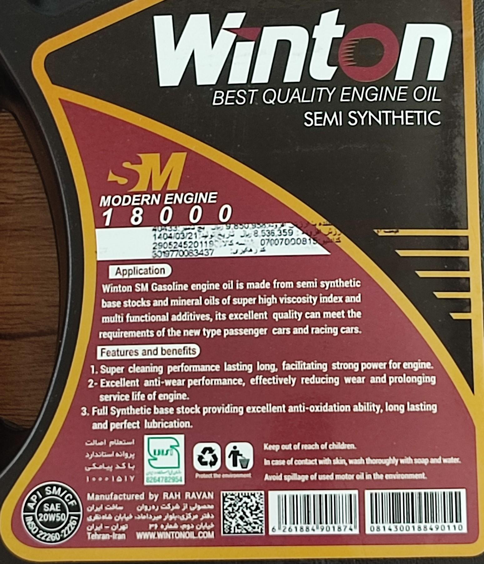 🛢️ معرفی کامل روغن موتور Winton 20W50 SM | نیمه سنتتیک با سطح کیفی SM